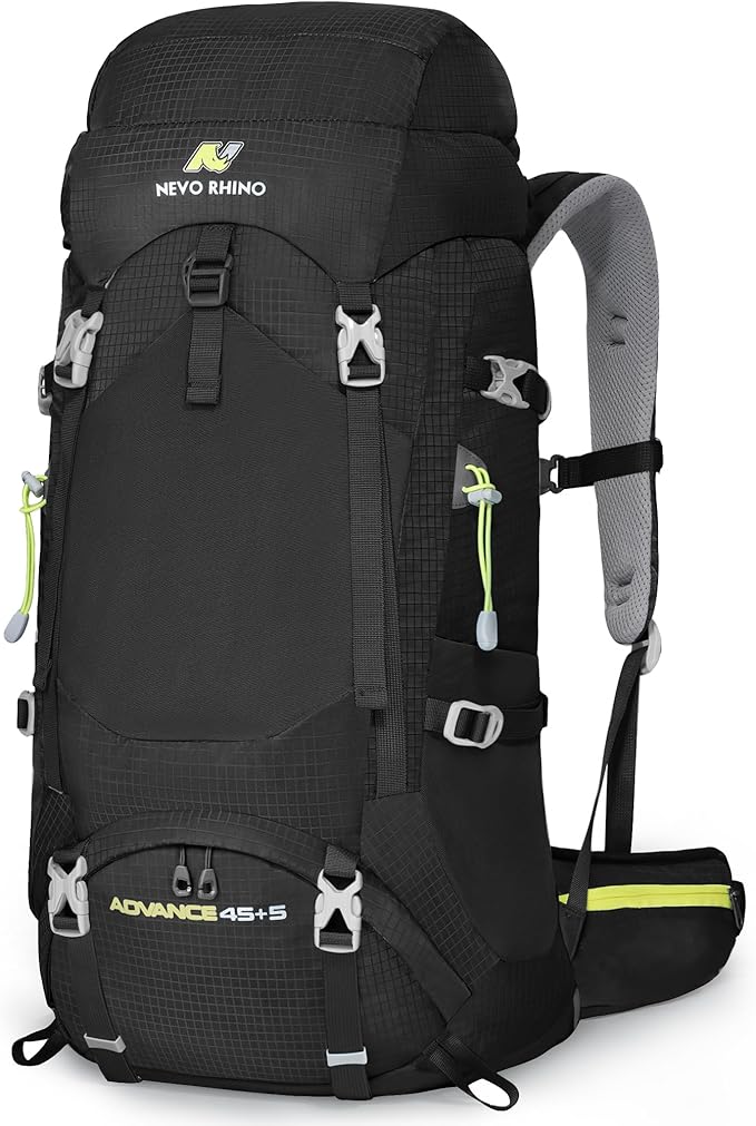 N NEVO RHINO Internal Frame Hiking Backpack 50/60/65/70/80L, Mountain Climbing Camping Backpack Daypack Waterproof Rain Cover