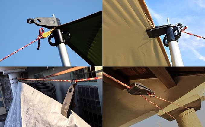 - Easy to Use- Easy to install or remove just to tighten or loosen the screw knob. The teeth inside hold the tarp tightly, but do not tear or damage it. Hook tail for rope adjusting and tightening