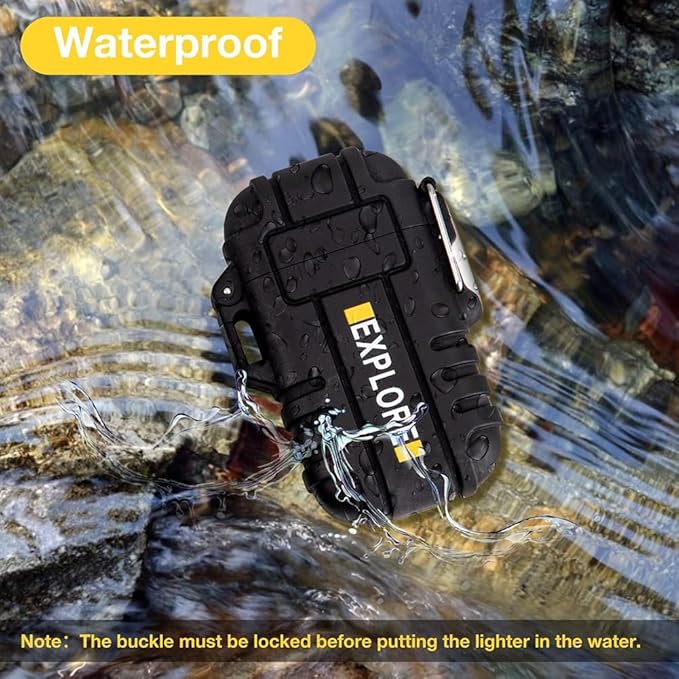 - WATERPROOF DESIGN: waterproof lighter, metal-ring sealed cover and locking clasp, IP56 WATERPROOF allows them work well in rainy day and windy day. This electric lighter is a necessary survival tactical gear for camping, backpacking, hiking emergency equipment