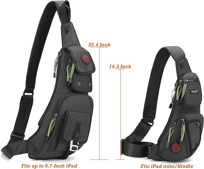 - Dimension: 9.4"L x 22.4"H x 3.9"W. Main pocket fits a 9.7'' tablet with case. Just right for keeping your essential belongings close and safe. All at once keeping your hands free so you can enjoy more.