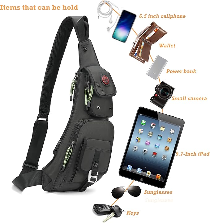 - Practical: If you want something smaller to carry rather than having to lug around a huge backpack, this sling bag is a good alternative. It can carry wallet, cell phone, keys, charger, journal or water bottle.