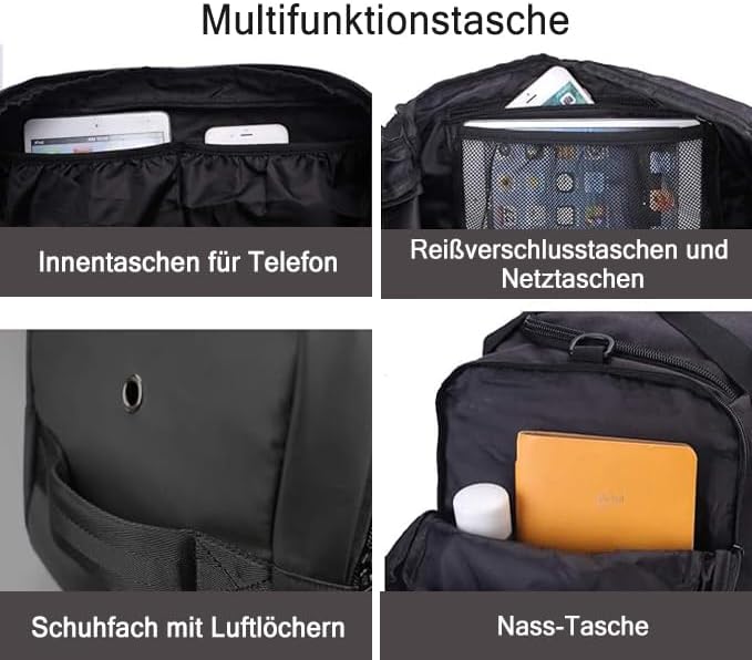 - 【Separate Shoes compartment & Wet Pocket】The separate shoes compartment is designed with a air hole to keep sport duffle bag clean and ventilated. The maximum loaded size of the compartment is 16. The wet pocket with waterproof material can store your sweaty clothes to keep your main compartment dry. The bag is able to use as a Gym bag, Overnight bag, Weekend bag, Travel duffel bag