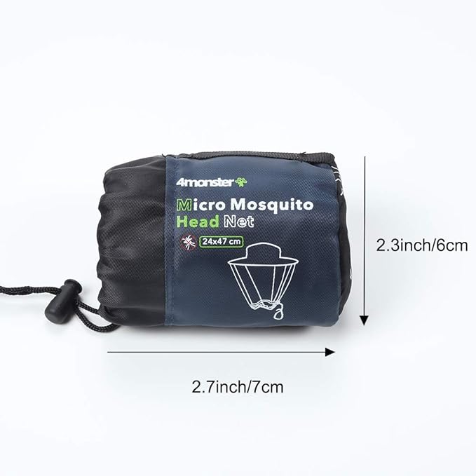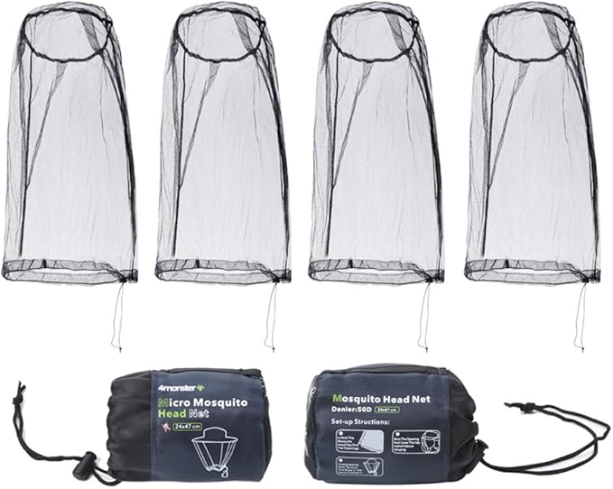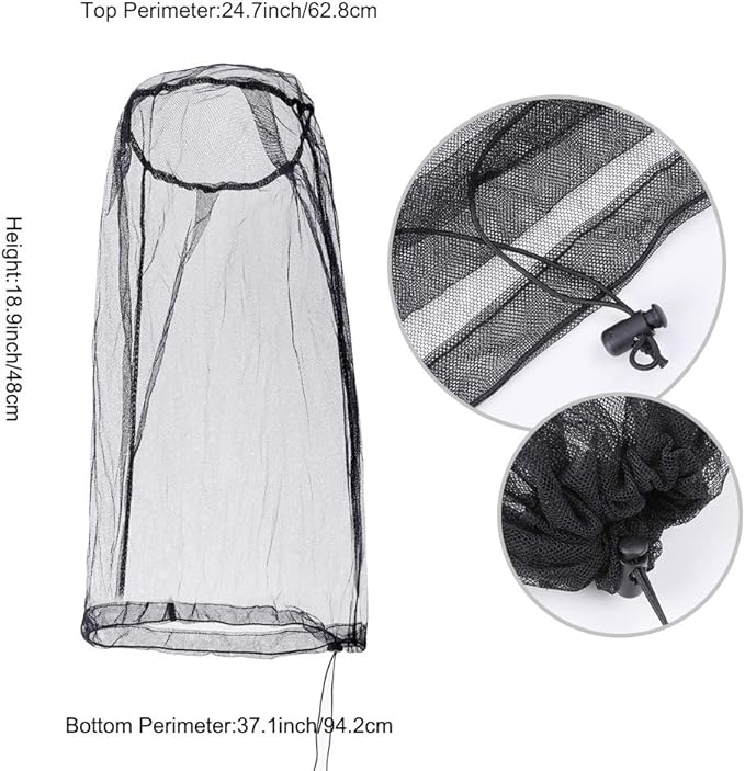 4Monster Mosquito Head Net Hat, Ultra Large, Extra Fine Holes, Insect Netting, Bug Face Shield, Soft Durable Fly Screen, Protection for Outdoor Lover, with Carry Bag Black