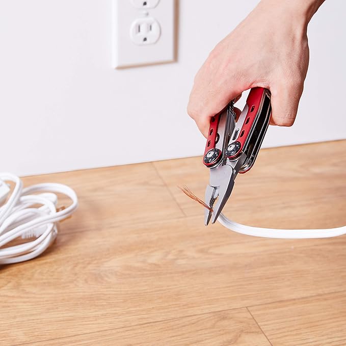- 10-in-1 multi-function tool includes needle nose pliers, standard pliers, wire cutter, knife, saw, slotted screwdriver, Phillips screwdriver, bottle opener, and carabiner