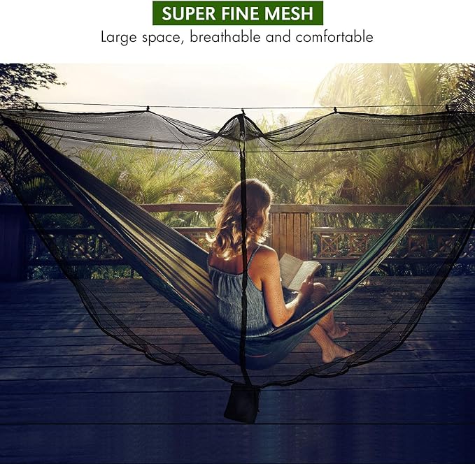• 【BREATHABLE & WASHABLE HAMMOCK NET】-- Made of superior breathable polyester mesh netting, which makes it ventilated. And it will provide 360 degree coverage to protect you better. It is washable, dry up quickly for repeated use. Please note that the hammock is not included.