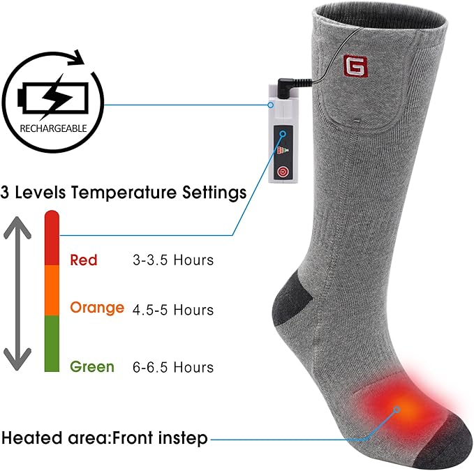 - 🔥🔥🔥 ELECTRIC HEATING SOCKS TIPS: The indicator on charger instep of battery turned green means the battery is fully charged.Hand wash only. No longer do you have to to suffer with cold feet all winter long.