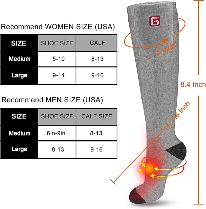 - 🔥🔥🔥 HEAT TOASTY FOOT WARMER: These heated socks heat up within 1 minutes.The temperature up to 120 °F to warm cold feet in winter.Fit for US Unisex Shoes Size 6-10. Fit for winter outdoor activities such as hiking, hunting, ice fishing, camping etc.