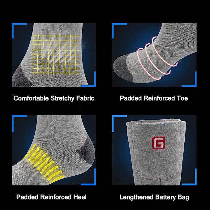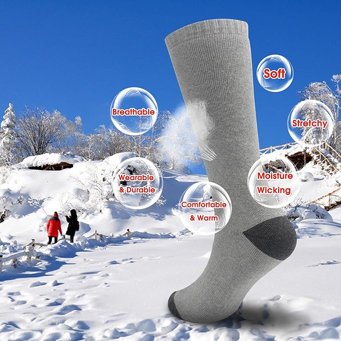 - 🔥🔥🔥 COZY THERMAL FOOT WARMER: This heat warmer socks are made of thick cotton and spandex. They're soft, warm and comfy. These cozy crew socks actually provide a lot of warmth just by themselves, even no battery.