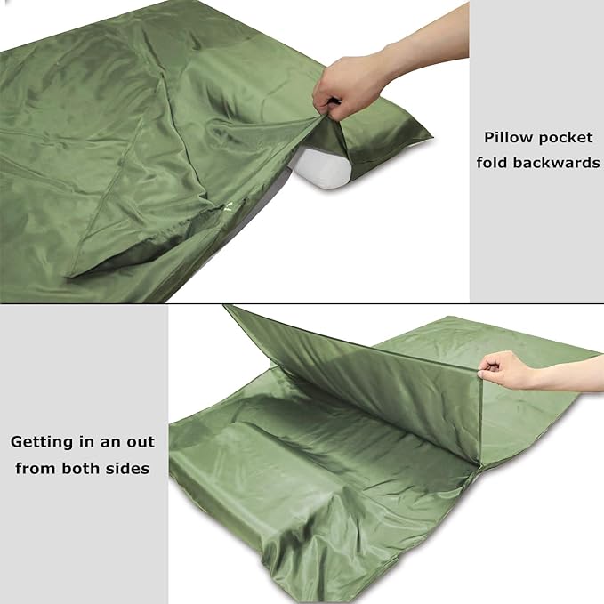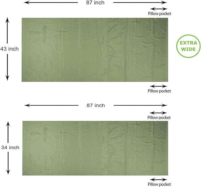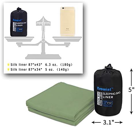 - EXTRA WIDE AND SUPER LIGHTWEIGHT: Two sizes for option: 87”x43” is an extra wide size, which is about 9” wider than a normal single liner. There’s generous space for the tall people to move freely. It weighs only 6.3oz. (180g); The 87"x34" liner weights 5oz. (140g), which is a comfortable size for one person. The liner is compacted in a tiny ripstop nylon stuff bag. With an attached hook on the carry case, you can link it up with the liner after taking the liner out, avoid losing the stuff bag.