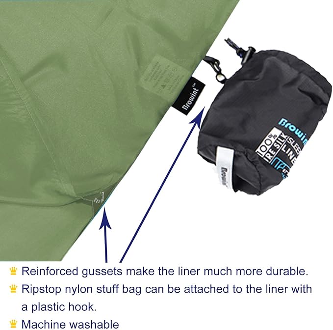 - Silk liner keeps your sleeping bag clean and It’s also ideal for hotels, hostels, travel, camping and sleeping cars. <b>Question again: Is it real silk??? BROWINT: Yes, it is!