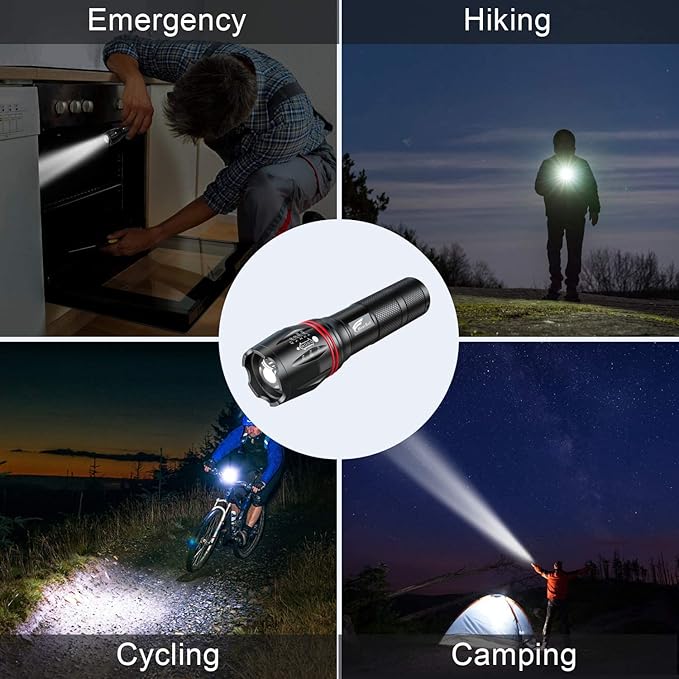 - Five Modes & Zoomable Focus: This led flashlights are designed with five adjustable modes high/medium/low/strobe/SOS mode. The flashlight's zoomable focus allows our to adjust for intense beam or a wider range light