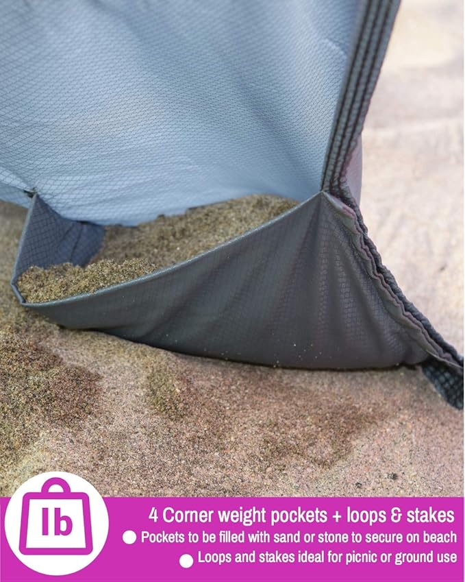 - Stay grounded with 2 anchor systems fill corner pockets with sand or use stakes on solid ground