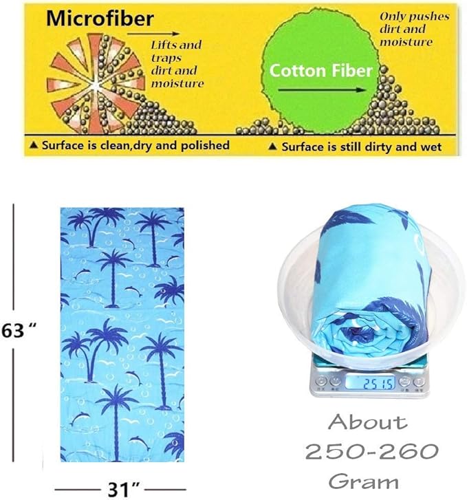 - ❤【LIGHTWEIGHT AND SUPER SOFT】: Don't worry about your bag weighing too much when you travel with our microfiber beach towels,this beach towel only has 260 gram. Soft as baby skin, it's perfect to use while exercising, swimming, bathing, camping, yoga or to simply dry up your face.