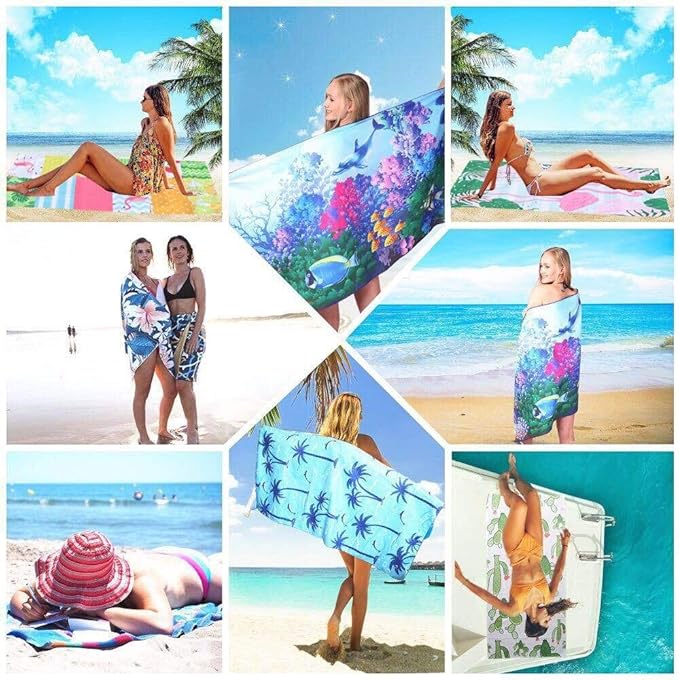 - ❤[SIZE AND MATERIAL]: Pool beach towels size 63" x 31".New developed microfiber material is eco-friendly,no faded and no smell which is not same as normal towel material.It has special characteristics– quick dry,super absorbent,sand free,baby soft.