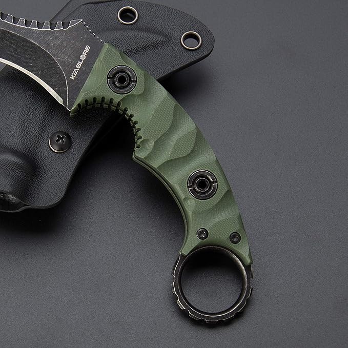 1911K Tactical Knife Fixed Blade Teeth Knife D2 curved Blade & G10 Handle for Outdoor Survival, Camping, Bushcraft and Hunting, with Sheath (Stonewashed OD Green, 180)
