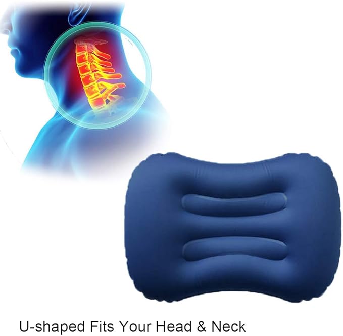 - ULTIMATE COMFORT - - Improved Ergonomic Design with Enhanced neck support for a restful night’s sleep! Inflates to a generous 17 x 13 x 5 inches, in a mere 3-5 breaths (approx.). Ergonomically designed for superior neck and back support while you travel or camp.
