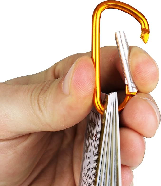 - Includes mini carabiner for clipping your knot cards to your pack or bug-out bag