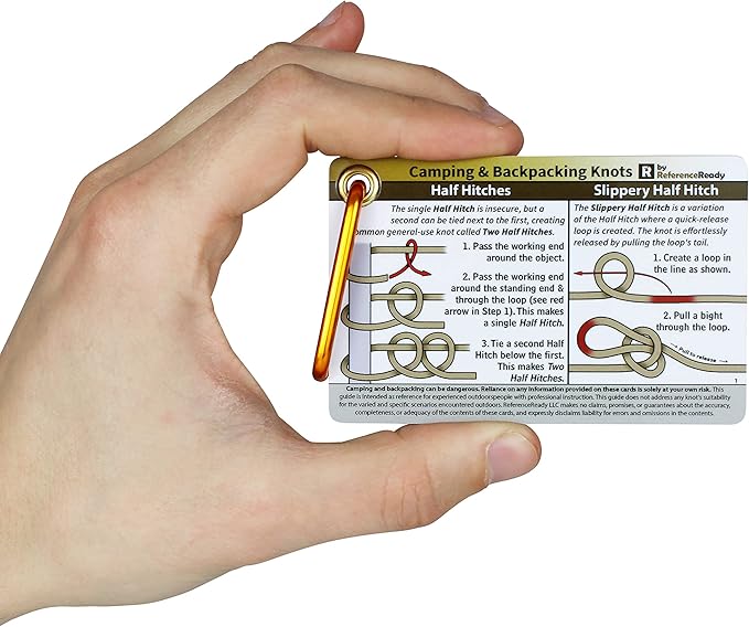 Outdoor Knots - Waterproof Knot Tying Cards with Mini Carabiner - Includes 22 Rope Knots for Camping, Backpacking, & Scouting Scenarios