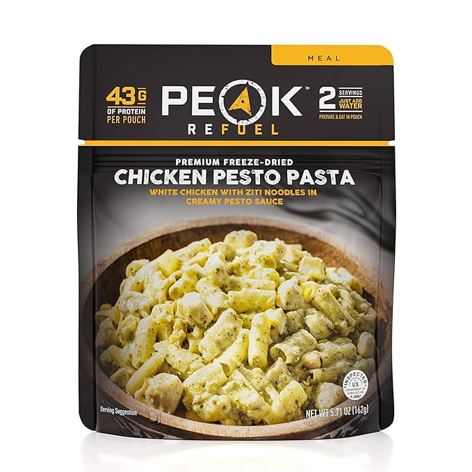 Peak Refuel Chicken Pesto Pasta| Premium Freeze Dried Camping Food | Backpacking & Hiking MRE Meals | Just Add Water | 100% Real Meat | 43g of Protein | 2 Serving Pouch
