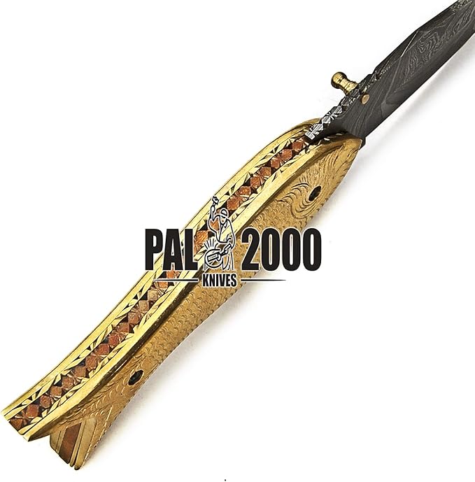 PAL 2000 KNIVES FOL-9573 Handmade Damascus Folding Custom Pocket Knife for Camping Fishing Outdoor Knife with Sheath