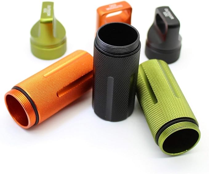 Ccanku C20 EDC Waterproof Case Military Level Survival Pill Match Case Box Container CNC Metal Seal Bottle Camping Essentials Tool, Survival Storage Container (Black Orange Green)