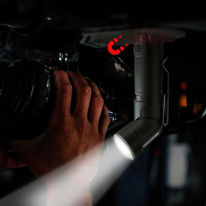- MAGNETIC BASE: The USB 90 degree flashlight is designed with a strong magnetic cap base, you can easily magnetize this flashlight to any iron surface, you can rotate it to suitable angle for hands free. Great for car repair, home lighting, camping, hiking, power outages, emergency.