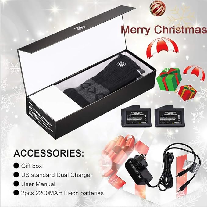 - 【7.4v 2200mah Batteries&3 Settings Temperature Controller】Battery socks powered by with 7.4V 2200mah rechargeable lithium battery packs,full charge around 3-4 hours,duration 3 - 8hours with 3 heat setting. controller LED red is for high temperature,white for medium temperature,blue for low temperature.you can easily adjust the temperature.