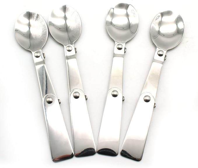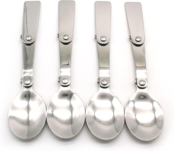 TEMO 4 pc Stainless Steel Three Folding Camping Spoon Dish Washer Safe, 2.25 Inch Folding Length