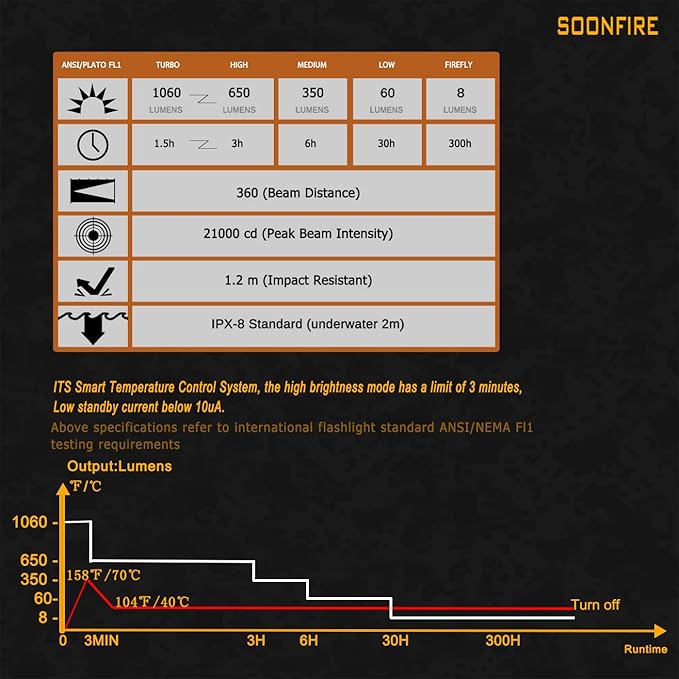 - COMPLETE PACKAGE - Full package contents include,Dimensions:Length 139mm,Head Diameter 28mm,Tail Diameter 25.4mm;Weight:125g.,ITS Smart Temperature Control System, the high brightness mode has a limit of 3 minutes.