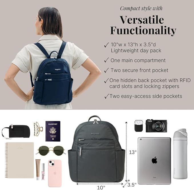 - SLASH-RESISTANT MATERIAL: Designed with slash-resistant, anti-theft fabric, this small backpack protects your belongings and holds up to weather, ensuring your travel backpack stays in pristine condition.