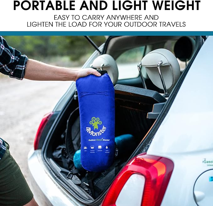 4Monster Down Camping Blanket - Outdoor Travel Quilt Puffy 650 Fill, Packable, Lightweight,Wind & Waterproof | Ideal for Stadium, Backpacking,Picnics, Beach and Hiking