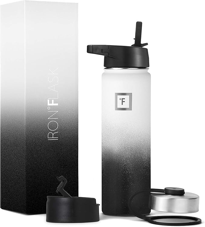 - 3 LIDS: YES, Iron Flask comes with THREE different LEAK PROOF lids. Carabiner Straw Lid with 2 Straws, Flip Lid, and a Stainless Steel Lid! *NOTE: The stainless steel lid is plastic from inside and stainless steel from outside*