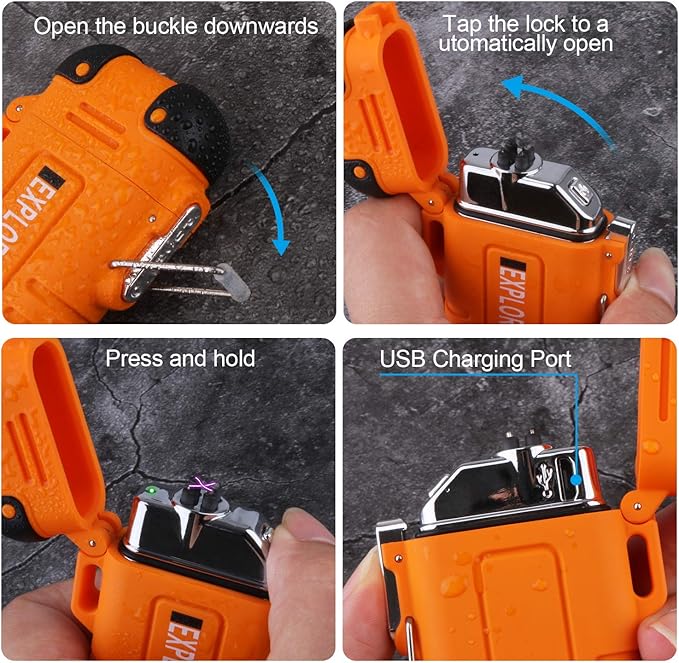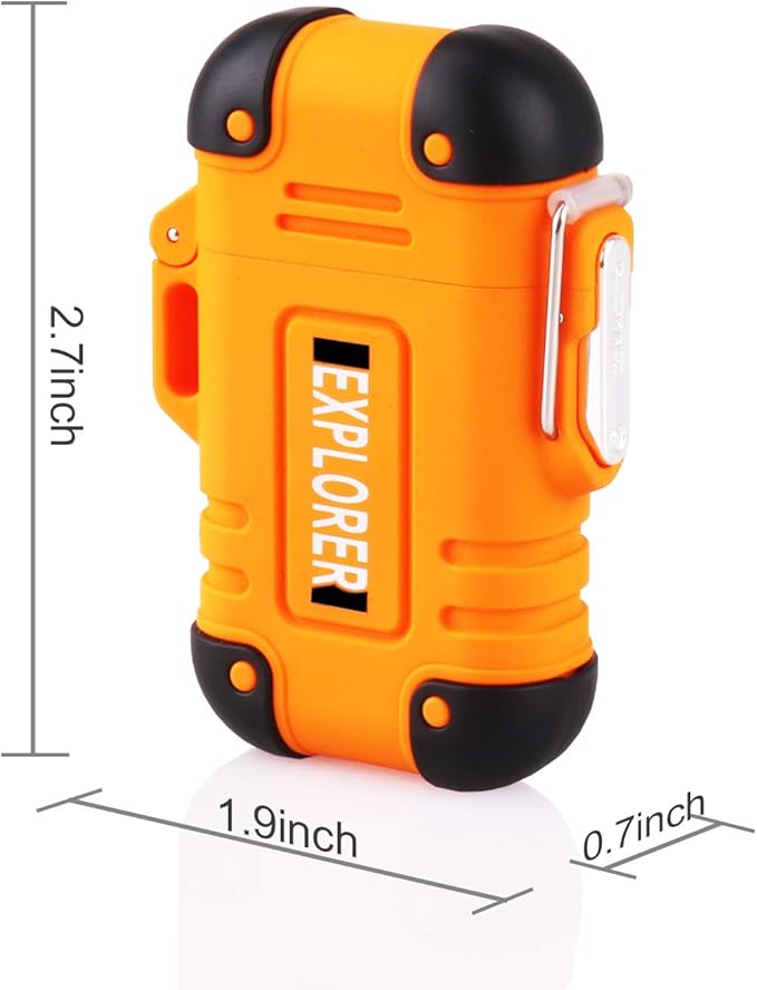 - Waterproof and windproof:Both lighter cover and locking clasp with metal ring sealed design,to achieve perfect waterproof function.Also,it’s flameless,works well even in windy or rainy days.erfect lighter for camping,hiking,travelling etc any outdoor activities. Easy to use for gas stove, BBQ, camping trip fire starter accessory, an emergency fire starter tool etc.