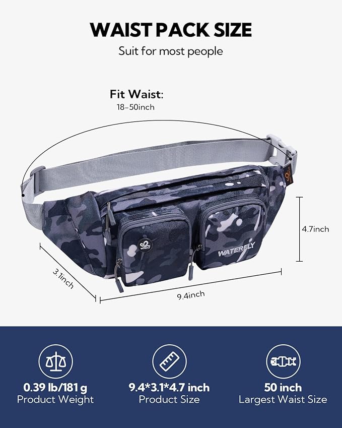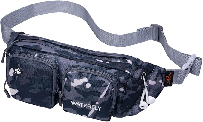 WATERFLY Fanny Pack Waist Bag: Travel Hip Pouch Bum Bag Plus Size Crossbody Fannie Pack Adjustable Belt Waistpack Phanny Fannypack for Man Woman Hiking Walking Jogging