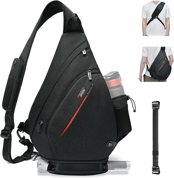 TUDEQU Sling backpack, 8 Pockets Sling Bag Crossbody, 19L Large Sling Bag for Men Travel Crossbody Backpack Hiking Outdoor