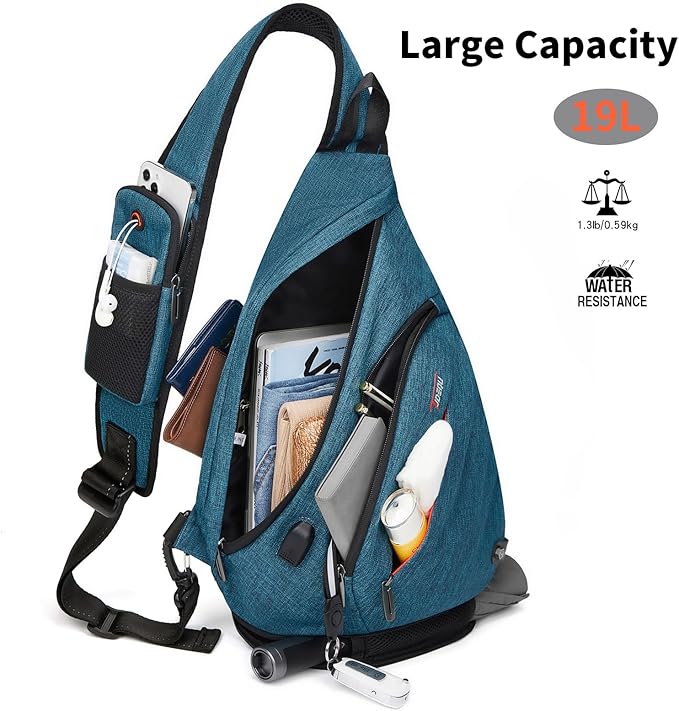 • ★ EARPHONE HOLE & USB CHARGING PORT - Phone pocket with headphone hole on hiking one strap backpack for men for easy listening. Plus, the USB charging port (note: power bank NOT included) of Single Strap Backpack for Menmakes it easy to keep your devices powered up while you're on the move.