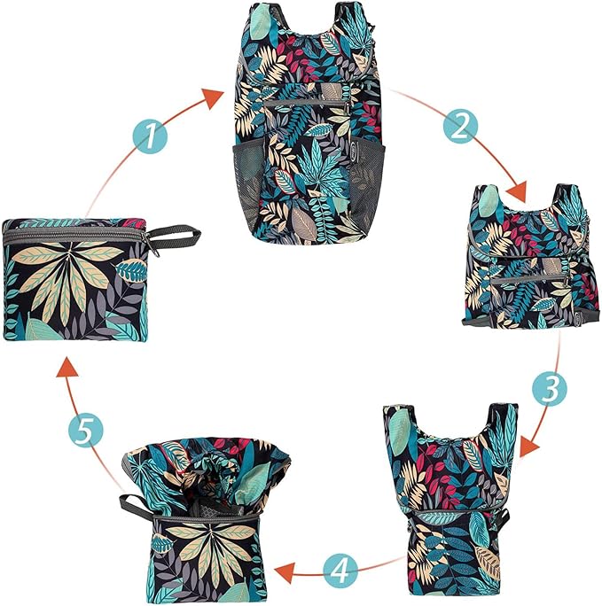 - Convenient and Lightweight: This hiking daypack is easy to fold and fit into an ultra-compact pouch. It's convenient to pack in your suitcase, purse, or car as a travel backpack without taking up too much space. Unfold size: 8.27x6.30x13 inches, Ultralight weight: 4.59oz