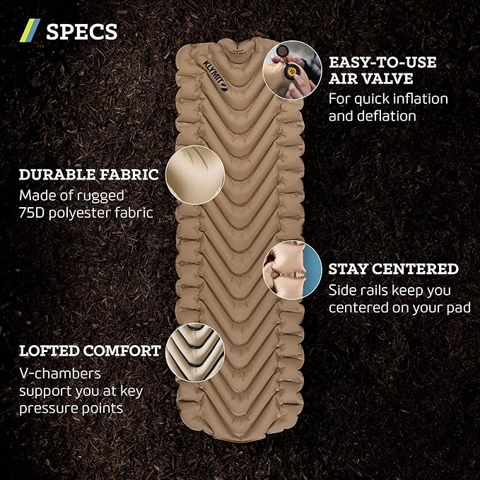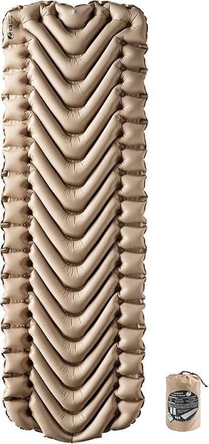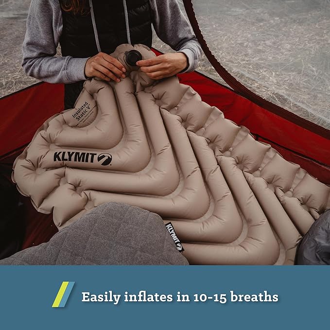 KLYMIT Insulated Static V Inflatable Sleeping Pad | Comfortable, Lightweight, Easy to Inflate, Portable Air Bed Mattress for Camping, Backpacking and Hiking — Coyote Sand