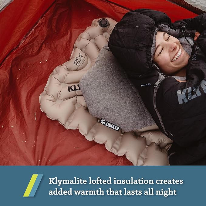 - 4 SEASON INSULATION. This mat's V-Chambers are filled with light and lofty Klymalite synthetic insulation. With an exceptional warmth-to-weight ratio, enjoy another warming layer between you and the cold ground.