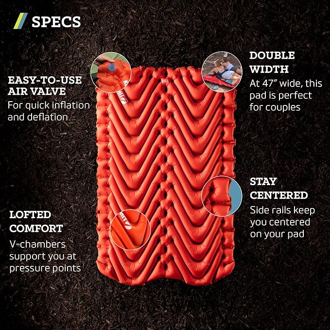 KLYMIT Insulated Double V Inflatable Sleeping Pad | Thick, Lightweight, Easy to Inflate, Foldable Air Bed for Camping & Backpacking