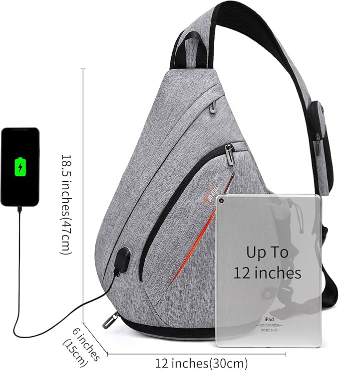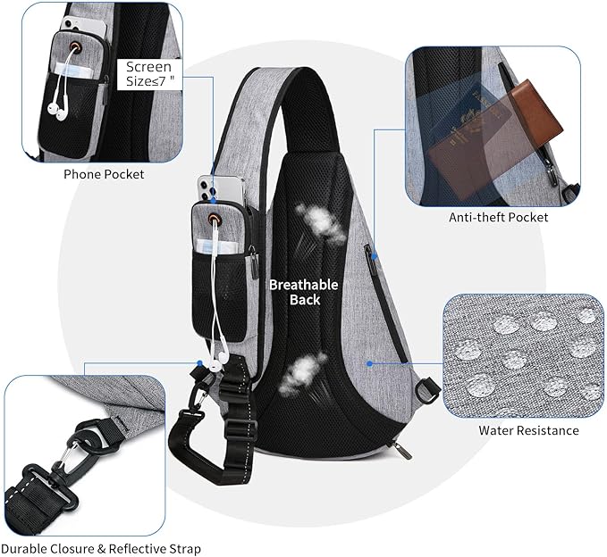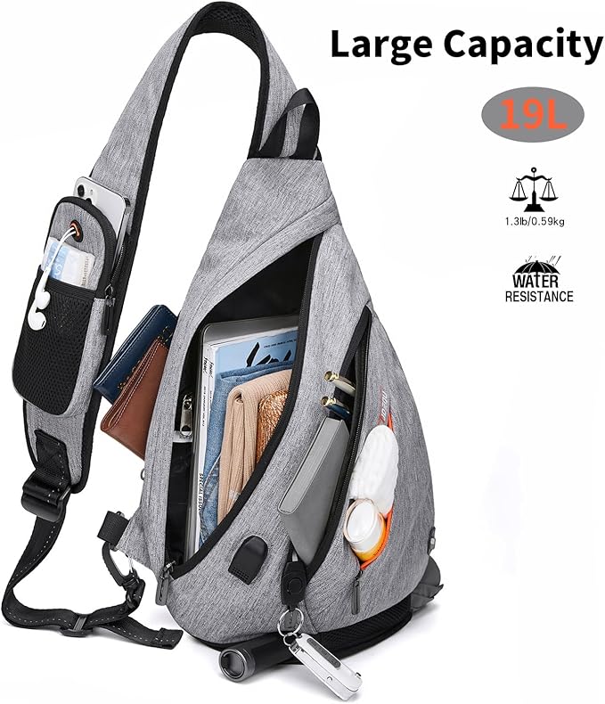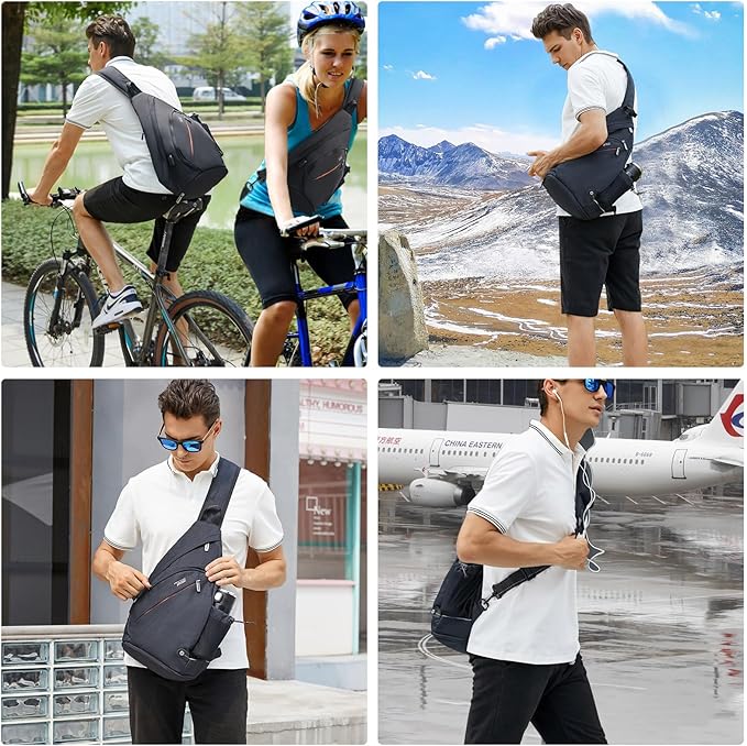 - ★ EARPHONE HOLE & USB CHARGING PORT - Phone pocket with headphone hole on hiking one strap backpack for men for easy listening. Plus, the USB charging port (note: power bank NOT included) of Single Strap Backpack for Menmakes it easy to keep your devices powered up while you're on the move.