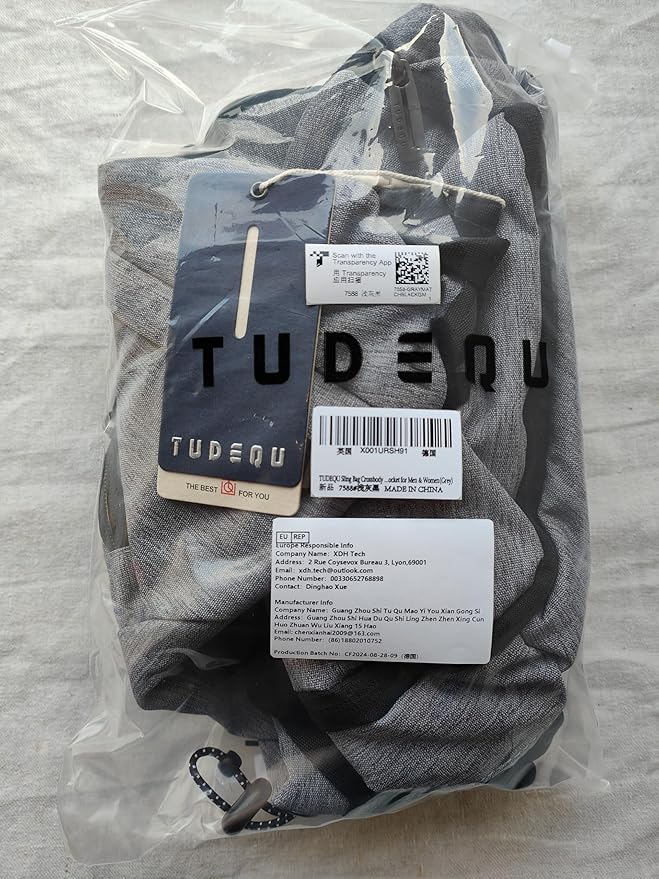 TUDEQU Sling backpack, 8 Pockets Sling Bag Crossbody, 19L Large Sling Bag for Men Travel Crossbody Backpack Hiking Outdoor