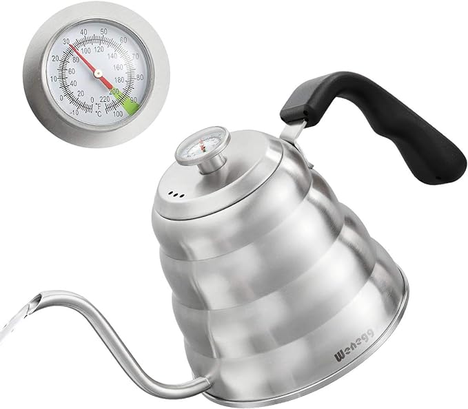 Pour Over Coffee Kettle with Thermometer for Exact Temperature 40 fl oz - Premium Stainless Steel Gooseneck Tea Kettle for Drip Coffee, French Press and Tea - Works on Stove and Any Heat Source
