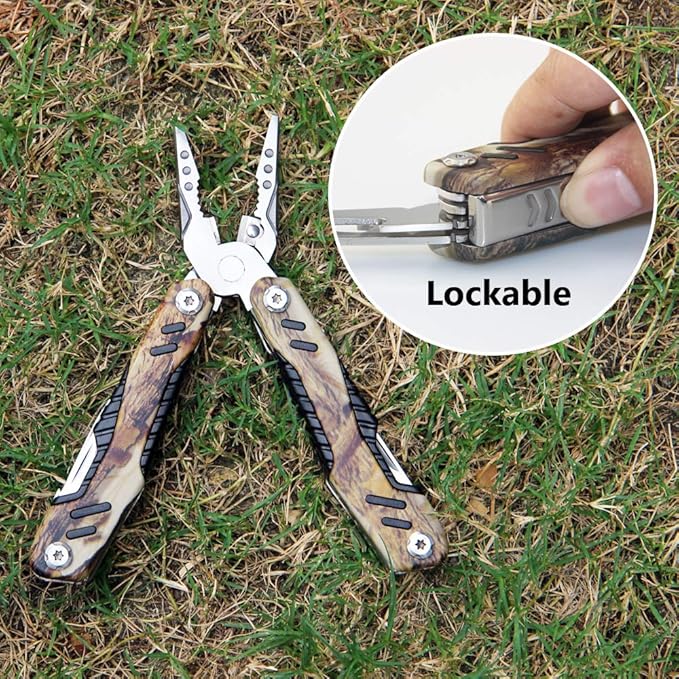 - Safe Locking Mechanism: With side lock design, every tool and knife ( except the pliers heads ) will be locked when fully open. You can put pressure on the implement after safely completing the job, manually unlocking the tool to store it in the handle.