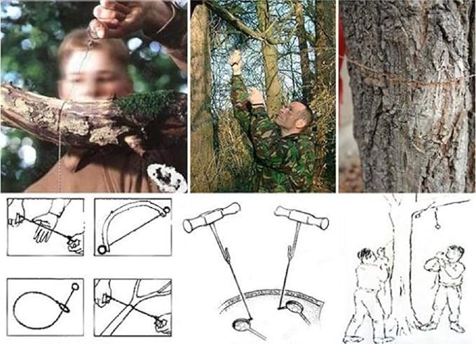 - SAVE YOUR FINGERS - The convenient slots in these gigli saws are made for putting sticks through to use as handles and save your fingers. You can simply cut items with a survival gear saw and two circular handles by gripping firmly into two handles and dragging the saw back and forth, The portable chain saws for trees with rope controlled by hand.