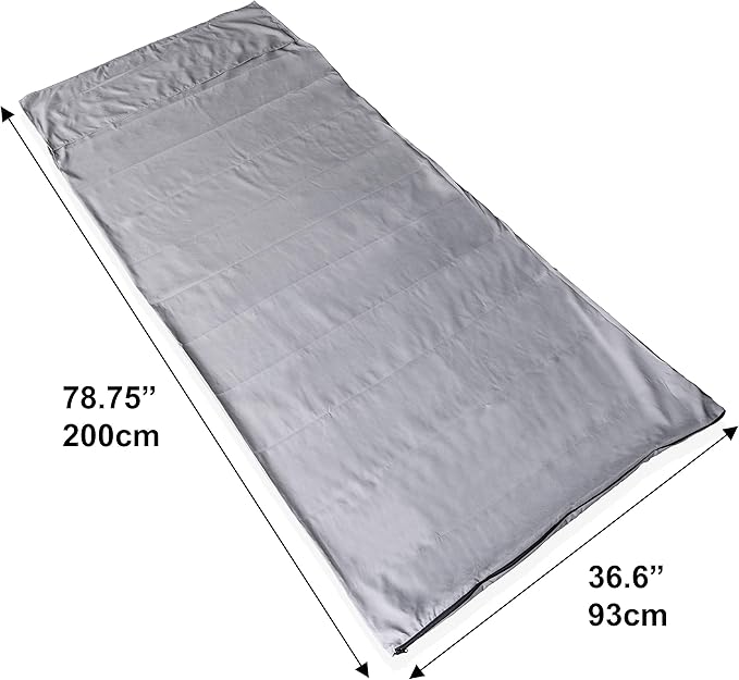 - Dimensions of sleeping bag liner are 82 X 35 inches. Choose from Blue or Gray.