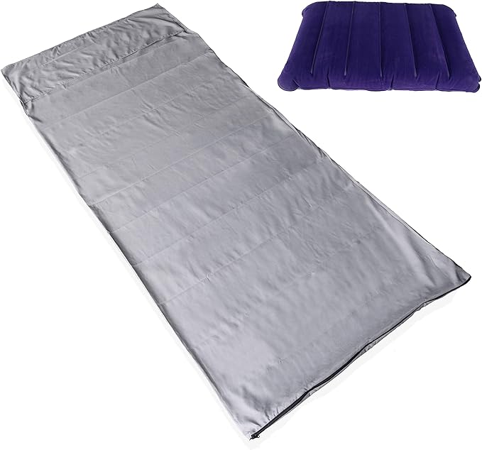 Sleeping Bag Liner, Blue Microfiber Adult Sleep Sack Travel Sheet with Zipper for Camping or Traveling Complete with a Carry Bag and Inflatable Pillow
