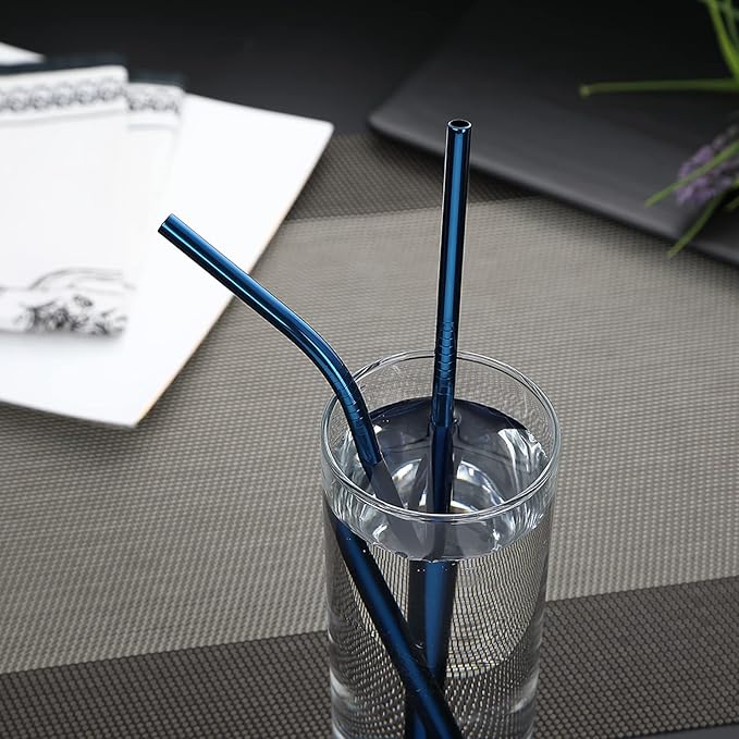 - The 8-piece portable silverware set includes: dinner knife, dinner fork, dinner spoon, chopsticks, straw cleaning brush, straight straw, bent straw, carrying case. Suitable for travel, camp, school or workplace