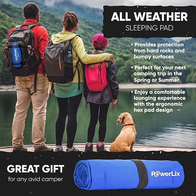 - REJUVENATE YOUR BODY: Powerlix camping pad has revolutionary hexagon design made with body mapping technology. The hexagon air cells ergonomically support all of your pressure points, giving you superior support and comfort all night long, no matter how you sleep! The sleeping mat is also a camping gear must haves luxury, being comfortable yet lightweight. It rolls up small, making it effortless to carry around. The cot comes in a variety of color choices, sure to match anyone's personality.