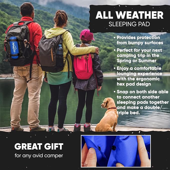 - REJUVENATE YOUR BODY: Powerlix camping pad has revolutionary hexagon design made with body mapping technology. The hexagon air cells ergonomically support all of your pressure points, giving you superior support and comfort all night long, no matter how you sleep! The sleeping mat is also a camping gear must haves luxury, being comfortable yet lightweight. It rolls up small, making it effortless to carry around. The cot comes in a variety of color choices, sure to match anyone's personality.